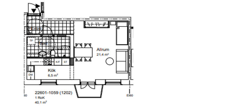 Här möts du av ett härligt ljusinsläpp som skapar en trivsam och inbjudande atmosfär i hela bostaden. Det moderna köket är stilrent utformat och utrustat med diskmaskin och mikro, vilket gör vardagen både smidig och bekväm.